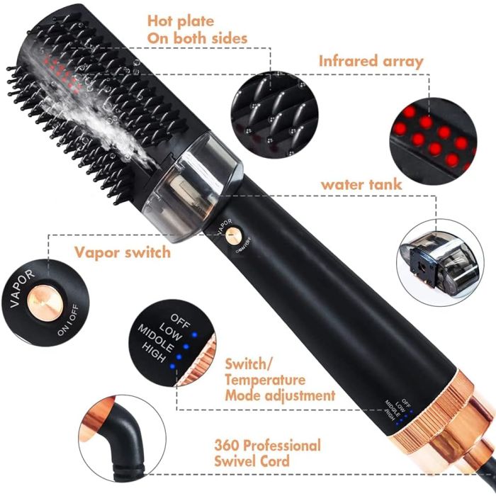 - يعمل بالبخار لتغذية الشعر ومنع الجفاف