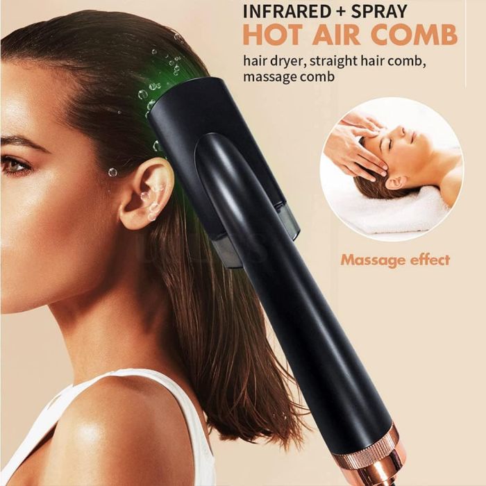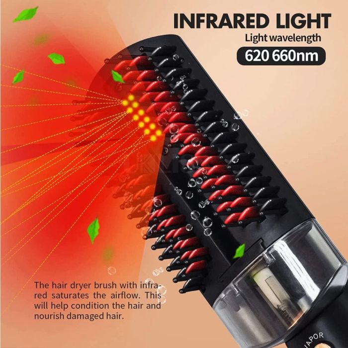 تمنحك فرشاة VARNA تجربة تصفيف احترافية بفضل تصميمها المتطور الذي يجمع بين الهواء الساخن والبخار والأشعة تحت الحمراء في جهاز واحد. يساعد البخار على ترطيب الشعر أثناء التصفيف، مما يمنع الجفاف والتقصف الناتج عن الحرارة العالية.