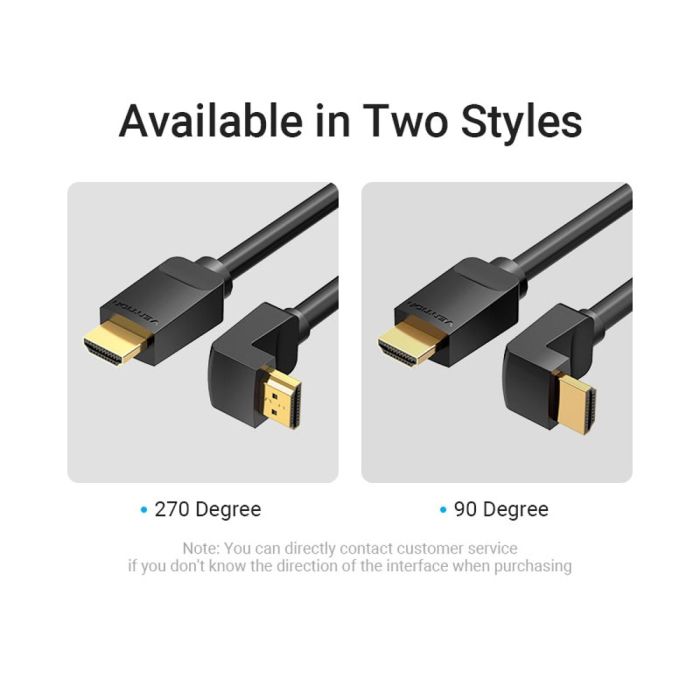 كيبل HDMI بزاوية 270 درجة من Vention (1.5 متر، 2 متر، أو 3 متر)