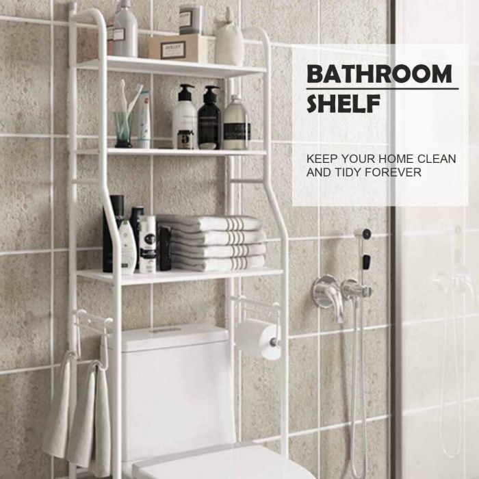 ان السطح مدهون من طلاء لامع آمن ، لذلك سيكون أكثر سلاسة ومتانة لمقاومة أفضل للماء توفر الأرفف مساحة كافية للتخزين أو لعرض أساسيات الحمام. تعليمات التجميع سهلة خطوة بخطوة تجعل من السهل التجميع . أرفف متعددة الاستخدامات لمناشف الحمام ، وأدوات النظافة ، وورق التواليت ، والشامبو ، والصابون ، والشموع ، ومنظفات الغسيل، والمزيد.