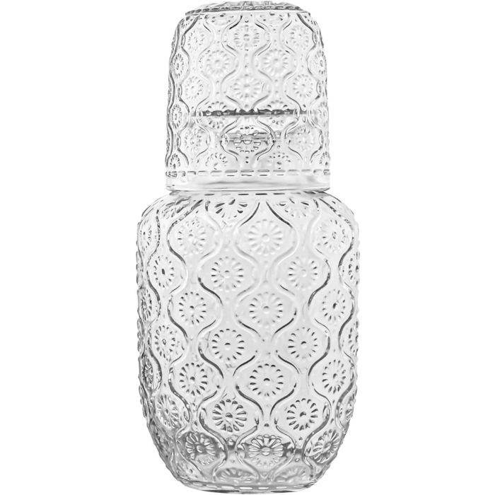 - طقم إبريق ماء زجاجي كلاسيكي 550 مل بجانب السرير مع كوب