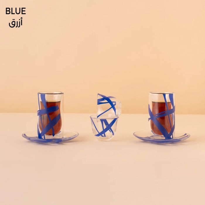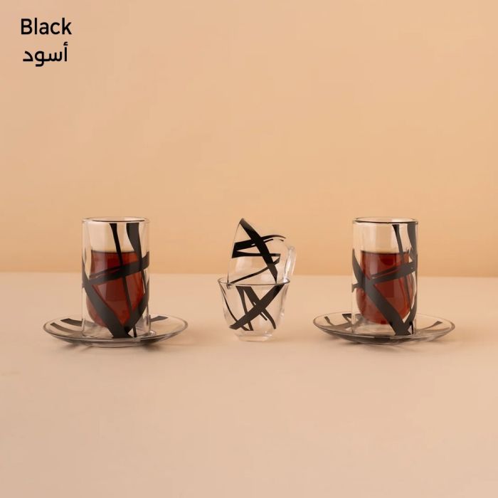 - يشمل 6 أكواب شاي + 6 صحون + 6 أكواب قهوة