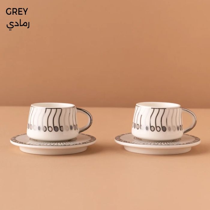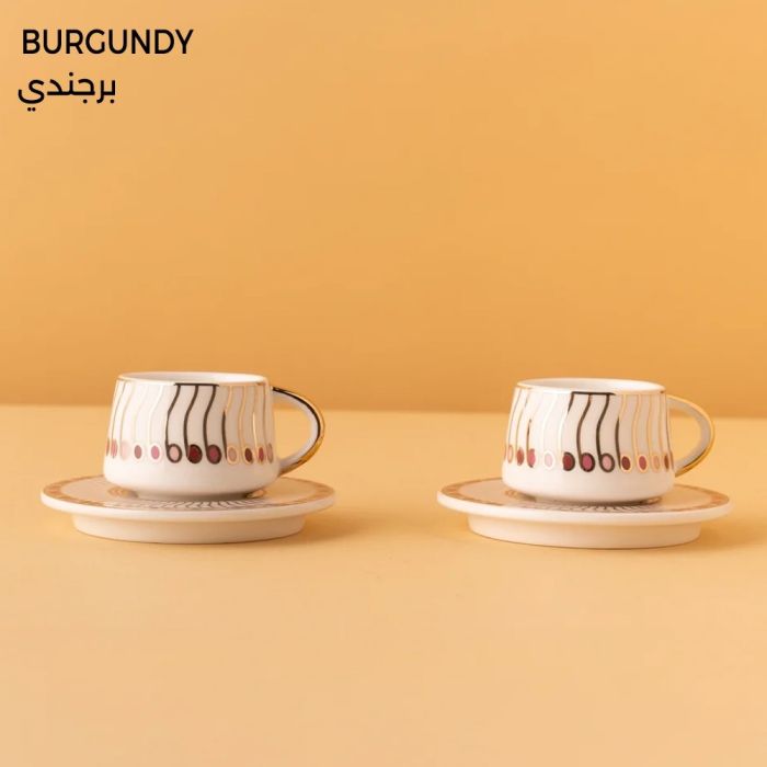 طقم أنيق من أكواب القهوة مع أطباق سيراميك، مثالي للتقديم اليومي والضيافة.
