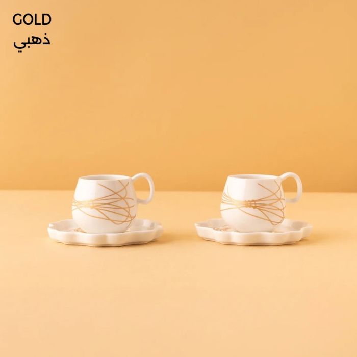طقم أنيق من أكواب القهوة مع أطباق سيراميك، مثالي للتقديم اليومي والضيافة.