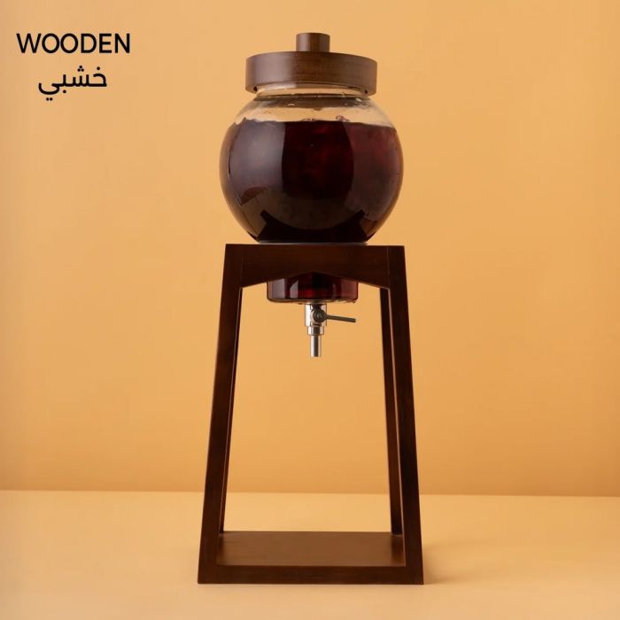 موزع مشروبات أنيق بسعة 2 لتر مع قاعدة بامبو، مثالي لتقديم العصائر والمشروبات الباردة.
