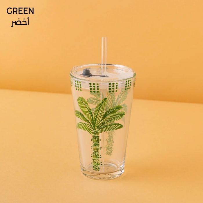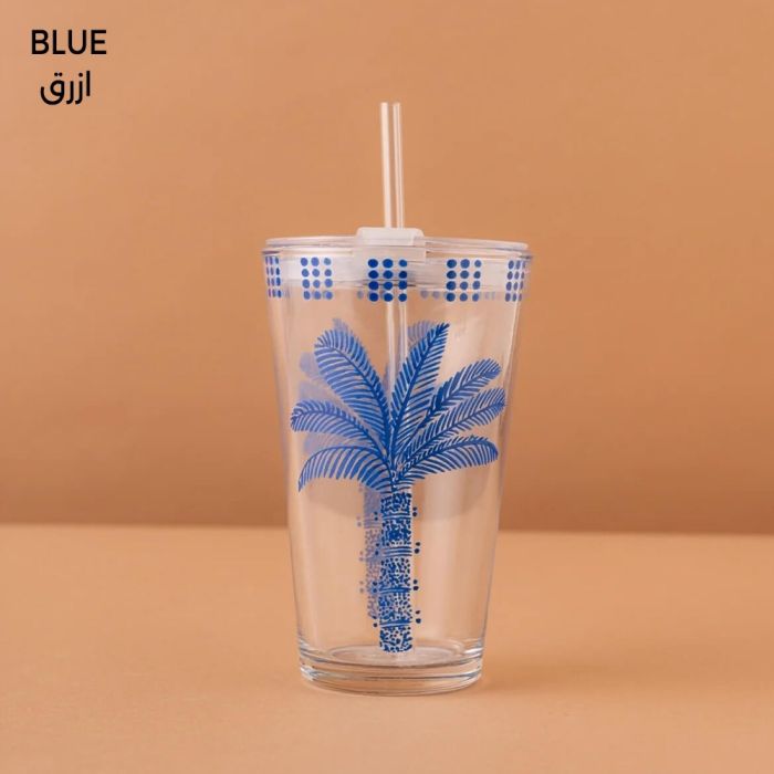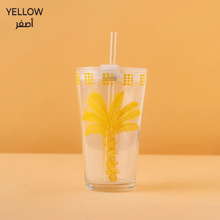 كوب زجاجي أنيق مع غطاء وانبوب شرب، مثالي لتقديم القهوة والشاي وجميع المشروبات بأسلوب عصري.