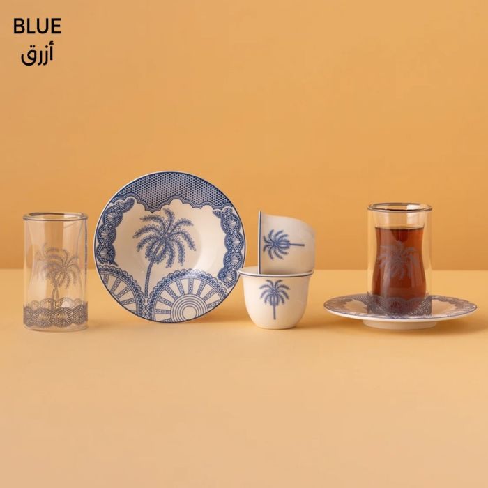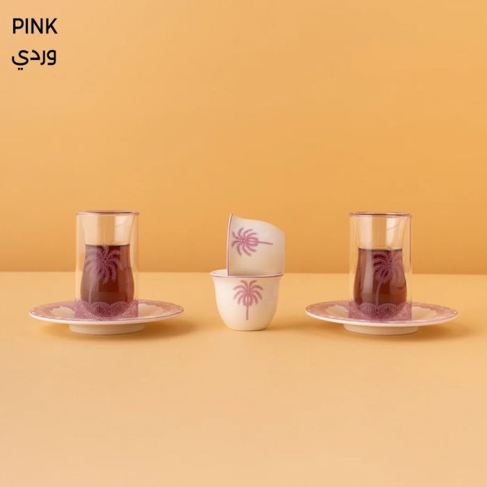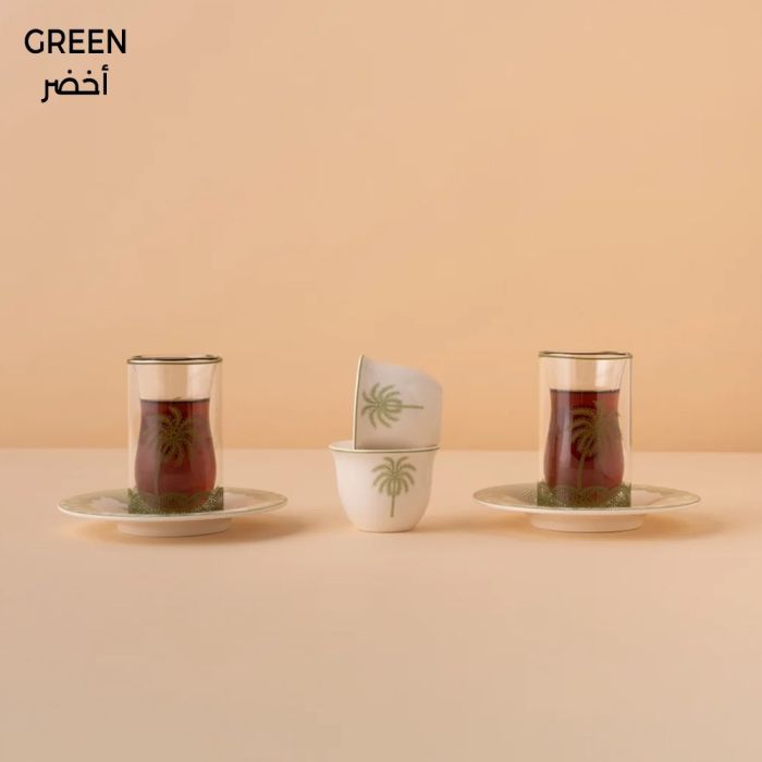 - يشمل 6 أكواب شاي + 6 صحون + 6 أكواب قهوة