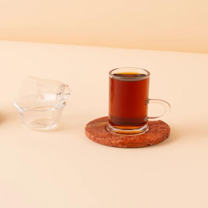 - يشمل 6 أكواب شاي + 6 صحون شاي رخامية + 6 أكواب قهوة عربية