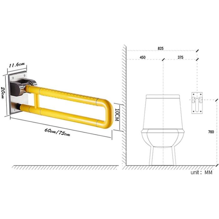 - مقبض أمان مثبت على الحائط مضاد للانزلاق للمرحاض 10 × 60 سم