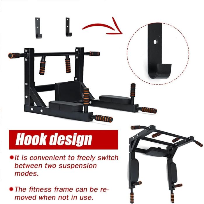 - محطة تمرين متكاملة - مثالية لتمارين العقلة، ورفع الذقن، والغطس، ورفع الساق، وغيرها