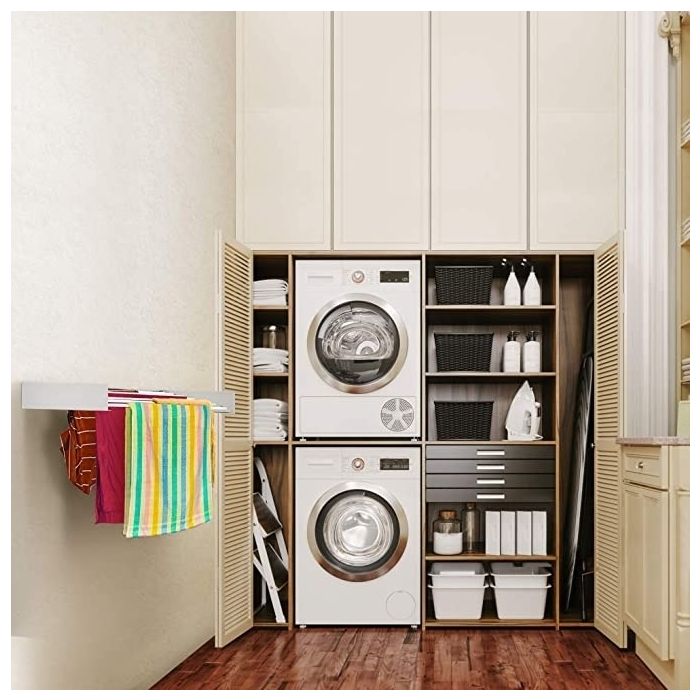 يتميز رف تجفيف الملابس بتصميم أنيق قابل للطي يتم إعداده في ثواني. بعرض 1 متر، يتم تثبيته بشكل أنيق على الحائط لتوفير مساحة تجفيف واسعة للاستخدام داخل المنزل، فهو مناسب للتركيب في الحمام أو المطبخ أو غرفة الغسيل. ويمكن استخدامه أيضًا في الاماكن الخارجية مثل فناء المنزل أو الشرفة. مزود بأذرع جانبية قوية وتدعم الاعواد عند فتحها، مما يسمح لك بتعليق المناشف والأوشحة والجوارب وأكثر...