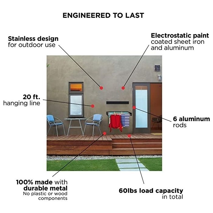 - رف تجفيف ملابس 6 أعواد ألمنيوم قابل للتمدد للتعليق على الحائط 1 متر