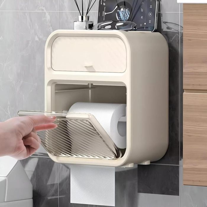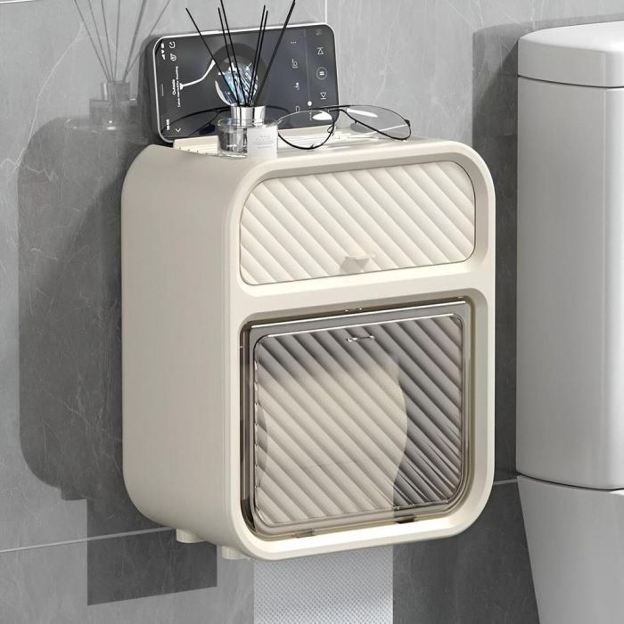 نظّم حمامك بذكاء وأناقة مع هذا المنظم المتكامل الذي يمنحك مساحة تخزين إضافية دون الحاجة لتشويه الجدران بالثقب. يوفر لك الدرج العلوي والسطح مكاناً آمناً لهاتفك واحتياجاتك اليومية، بينما يحمي الهيكل المتين المناديل من الرطوبة والعبث. إنه الحل المثالي للحفاظ على ترتيب ونظافة المكان بلمسة عصرية جذابة.