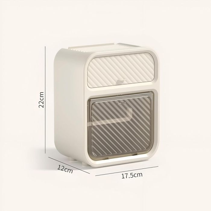 - تصميم عصري يجمع بين منظم للمناديل ودرج تخزين