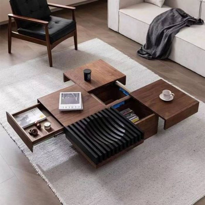 طاولة من خشب الجوز مع درج ومساحات تخزين مدمجة - 100 × 100 × 28 سم