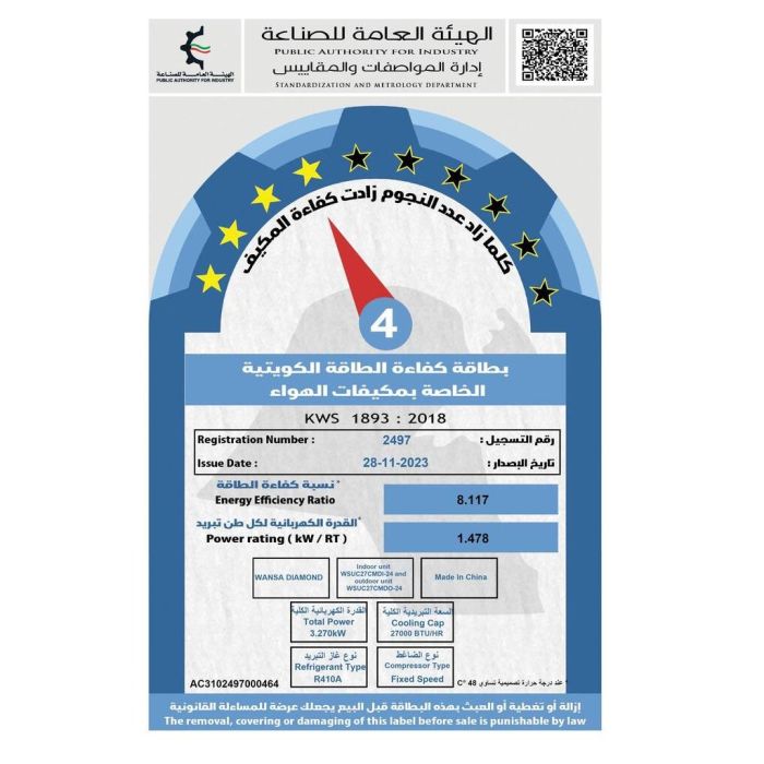 - مكيف هواء سبليت دايموند بقوة 27000 وحدة حرارية مع اتصال WiFi من Wansa