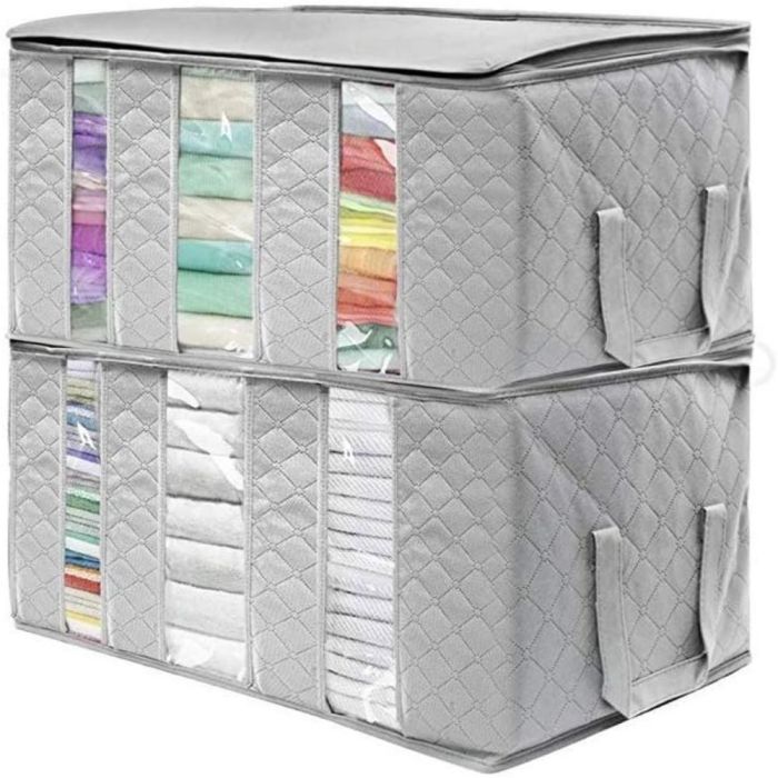 حقيبة تنظيم عملية للملابس والأغطية مصنوعة من قماش غير منسوج قابل للغسل وإعادة الاستخدام، بتصميم شفاف لتحديد المحتويات بسهولة ومقابض جانبية لسهولة الحمل