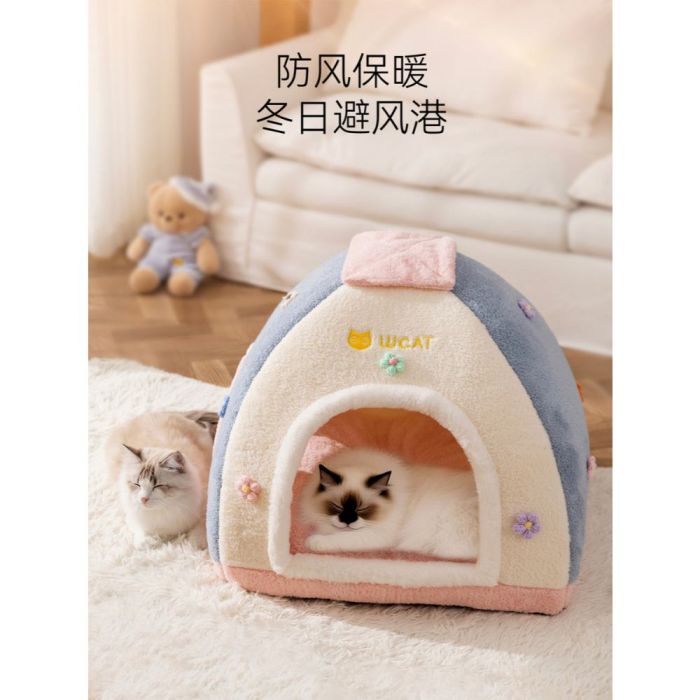 - بيت للحيوانات الأليفة شتوي دافئ بتصميم خيمة