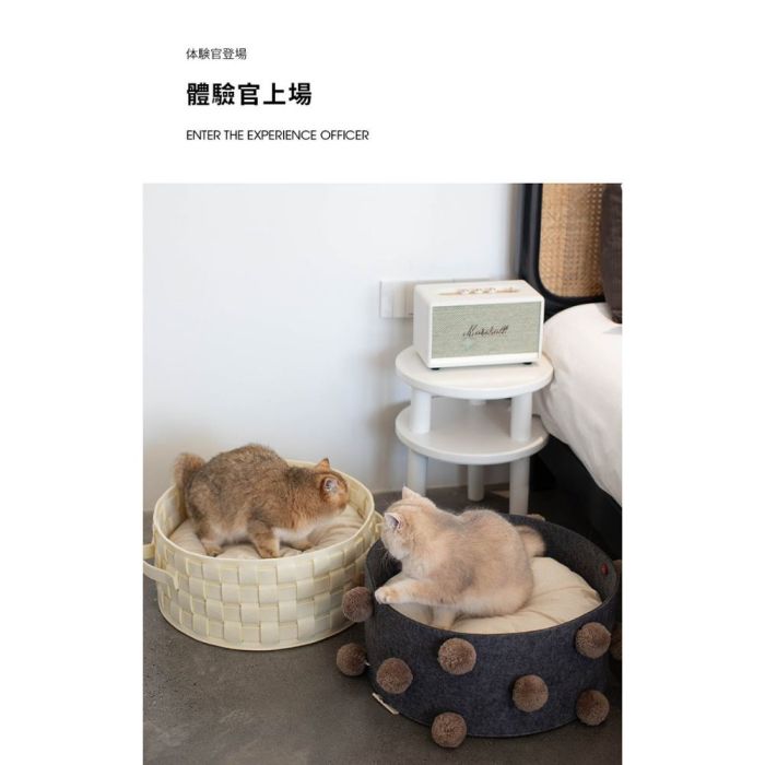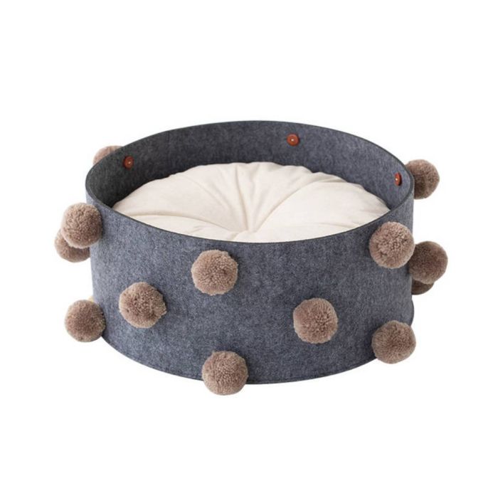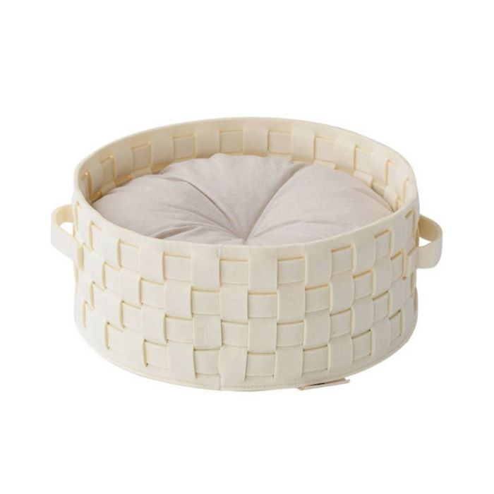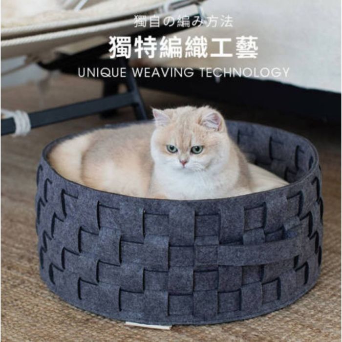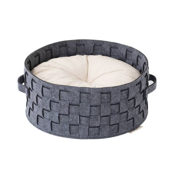 سرير دافئ منسوج دائري للقطط مصنوع من خامة لباد ناعمة مريحة، يوفر دعماً مثالياً ودفئاً طوال العام، تصميم دائري بحواف مرتفعة يمنح إحساساً بالأمان، يناسب القطط الصغيرة والمتوسطة داخل المنزل