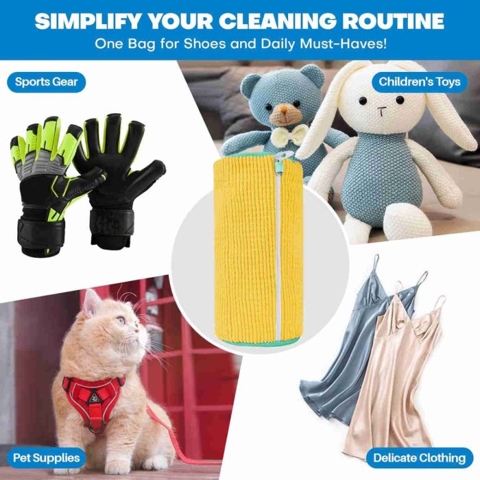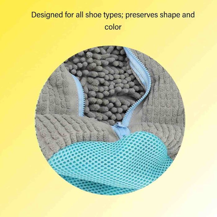 نظّف حذاءك بسرعة وسهولة باستخدام حقيبة الغسيل المصممة للحفاظ على الحذاء نظيفًا وغير متضرر. تمنحك تنظيفًا سريعًا ولطيفًا وشاملاً. ما عليك سوى وضع الحذاء داخل الحقيبة وإغلاق السحاب وترك الغسالة تقوم بالباقي. بفضل خامتها المصنوعة من البوليستر القابل للتنفس وسحّابها المتين، تبقى الأحذية محمية من التمزق أو التشوه أثناء الغسيل. مثالية للاستخدام اليومي أو أثناء السفر، حيث تعمل أيضًا كمنظّم عملي للأحذية يحافظ على نظافتها وفصلها عن باقي الأغراض.