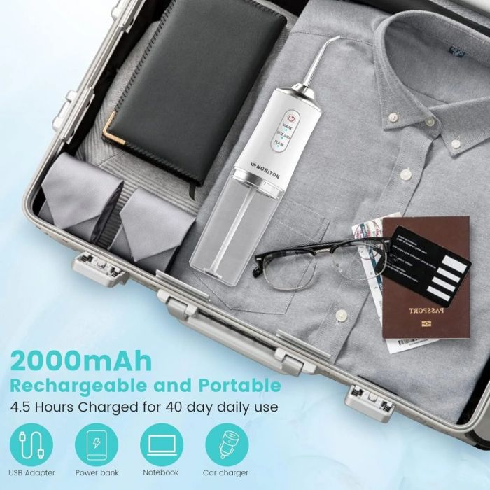 - يمنع جهاز الري الفموي المحمول العديد من مشاكل صحة الفم مثل رائحة الفم الكريهة وتسوس الأسنان ونزيف اللثة والأسنان الصفراء