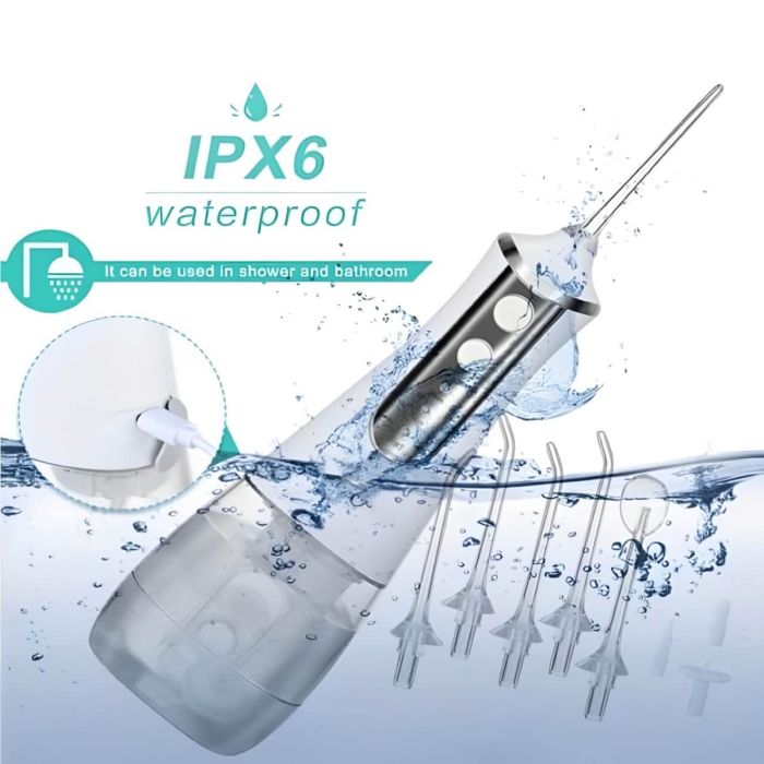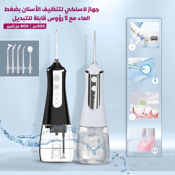 جهاز لاسلكي لتنظيف الأسنان بضغط الماء مع 5 رؤوس قابلة للتبديل
