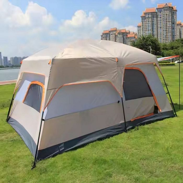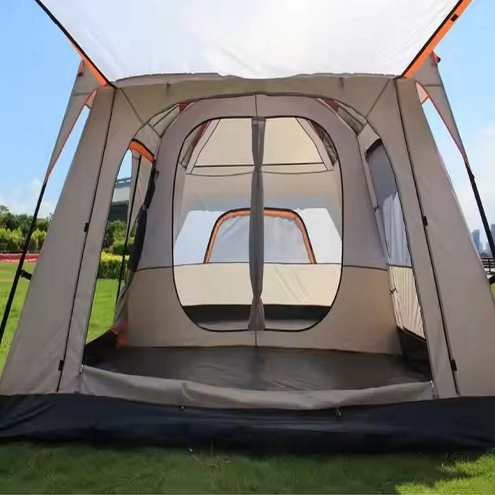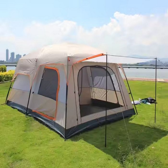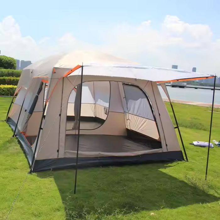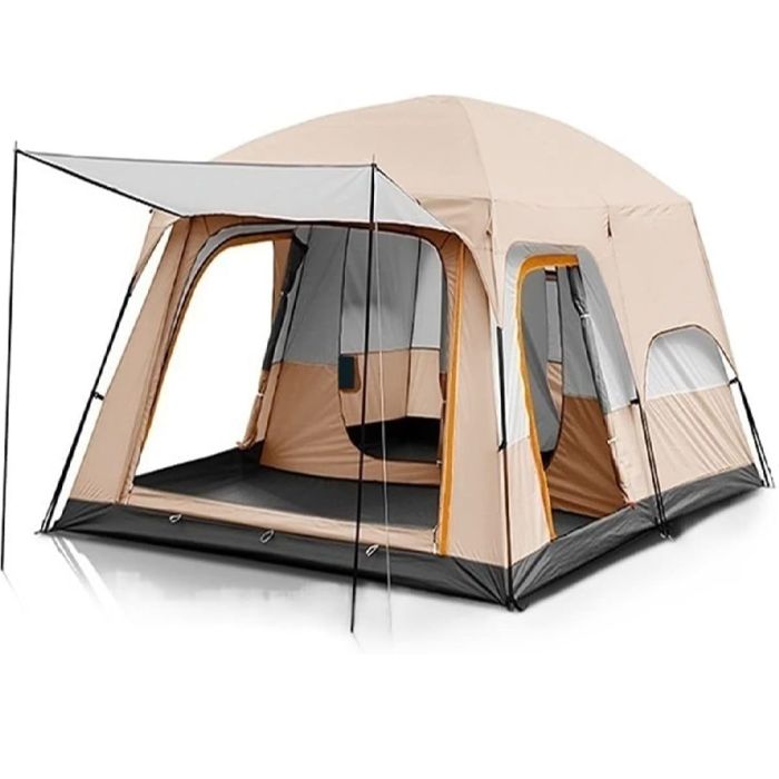 انطلق في مغامرات لا تُنسى مع العائلة والأصدقاء باستخدام هذه الخيمة الواسعة، فهي تحتوي على غرفتين نوم وصالة لتوفر لك الراحة والخصوصية أثناء المخيم. تصميمها يتسع لـ 8 إلى 10 أشخاص بشكل مريح، مما يوفر مساحة واسعة للنوم والاسترخاء. مصنوعة من قماش بوليستر أكسفورد عالي الجودة ومقاوم للماء، كما توفر هذه الخيمة تهوية ممتازة ومتانة فائقة لحمايتك من تقلبات الطقس. مثالية للعديد من الأنشطة الخارجية، مثل المخيم، الرحلات الشاطئية، الصيد، النزهات أو المهرجانات. مع سهولة التركيب والتصميم العملي، فهي تضمن لك الاستمتاع بكل لحظة من مغامرتك في الهواء الطلق وبكل راحة وسهولة