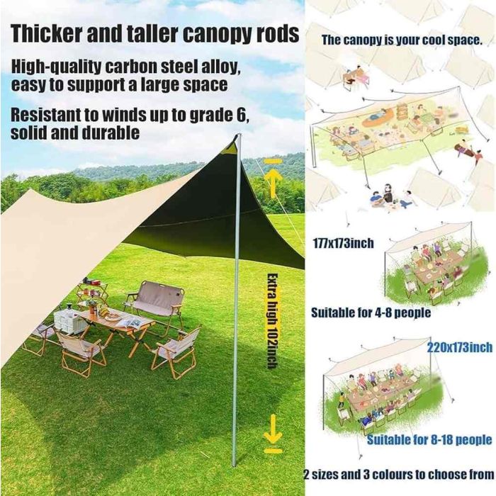 عزّز مغامراتك الخارجية مع هذا المظلة الشمسية القابلة للطي والخفيفة الوزن والمقاومة للماء. مصنوعة من مواد متينة ومصممة لسهولة الحمل، فهي رفيقك المثالي لأيام الشاطئ، ورحلات التخييم، والنزهات، وغيرها. توفر هذه المظلة حماية موثوقة من الأشعة فوق البنفسجية، ومساحة داخلية واسعة، لتبقيك منتعشًا ومظللًا في أي بيئة مشمسة.