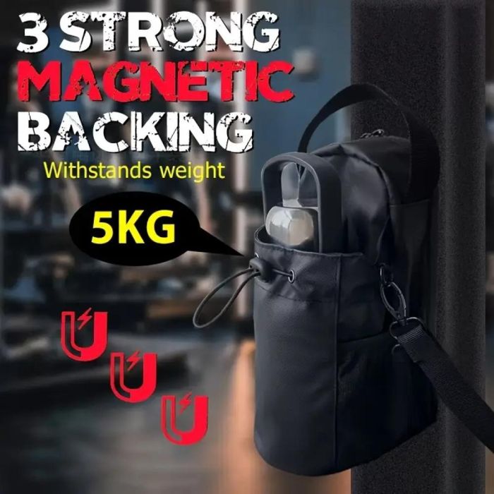 حقيبة مغناطيسية متعددة الاستخدامات، مقاومة للماء وعملية للاستخدام اليومي. يمكن حملها كحقيبة كروس أنيقة أو حقيبة صغيرة لتنظيم أغراضك الأساسية. تتحمل حتى 5 كجم بفضل 3 مغناطيسات قوية، وتأتي بجيوب متعددة تسهّل حمل الزجاجة، الهاتف أو الإكسسوارات