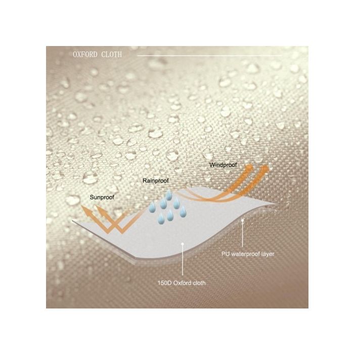 - مصنوعة من قماش أوكسفورد 150D المقاوم للشمس والرياح والمطر.