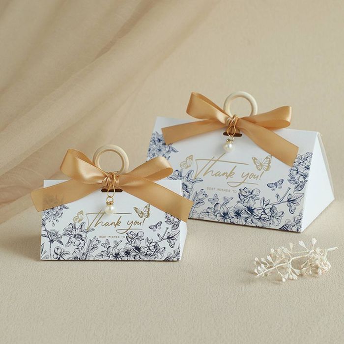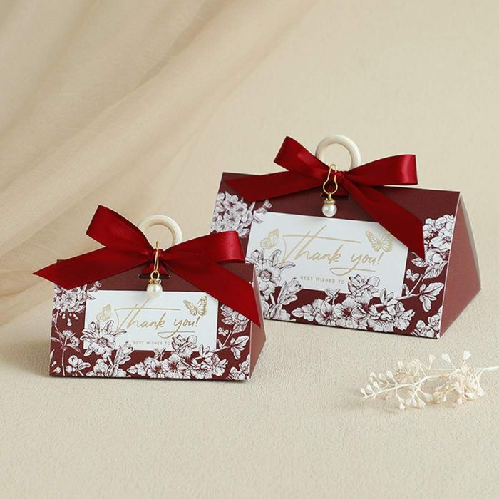 - علبة هدايا زفاف بحلقة خشبية ولؤلؤة 15 حبة