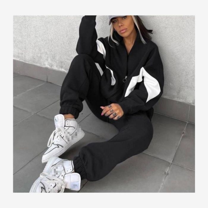 - طقم بدلة رياضية نسائية هودي وسروال على الطراز الغربي