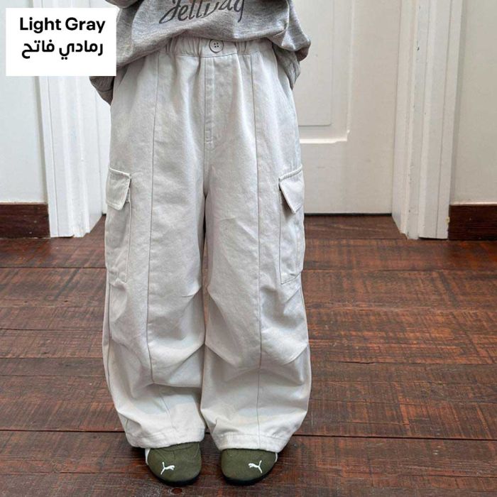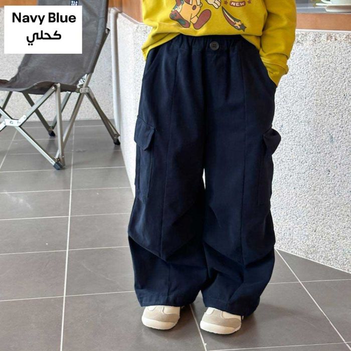 بنطلون واسع أنيق للأولاد والبنات مصنوع من قطن ناعم ومريح، يتميز بتصميم واسع يمنح حرية حركة ولمسة عصرية، مناسب للإطلالات اليومية، ثابت مع الاستخدام ويحافظ على جودته