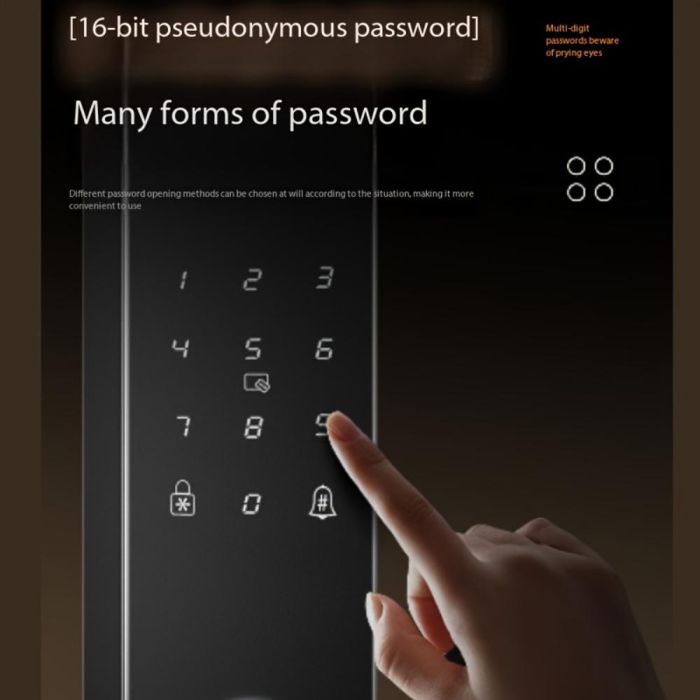 - يدعم عدة طرق للفتح: بصمة، كلمة مرور، بطاقة RFID، مفتاح، تطبيق