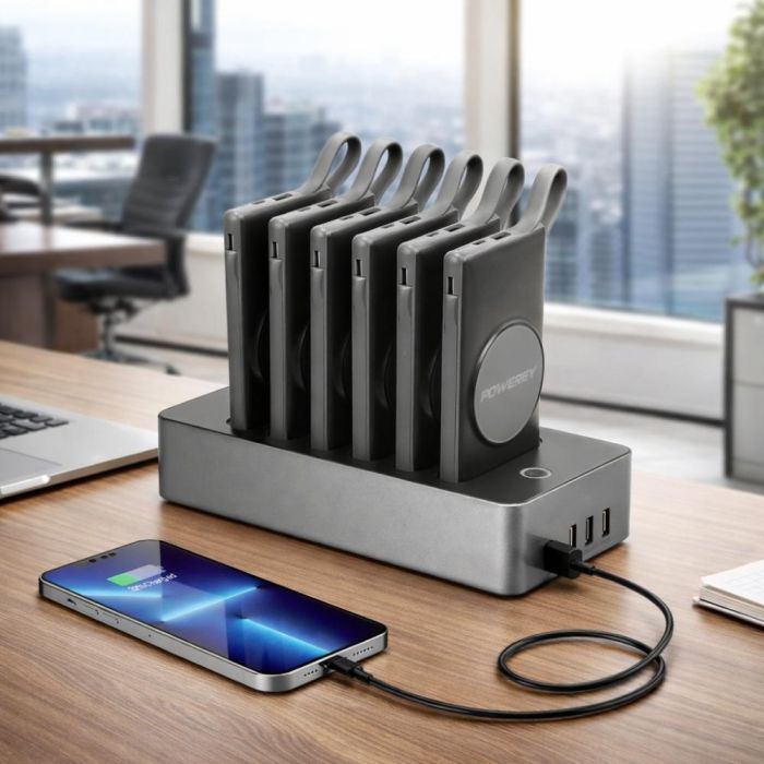 - منصة شحن ذكية مع 6 بطاريات متنقلة 10000 مل أمبير