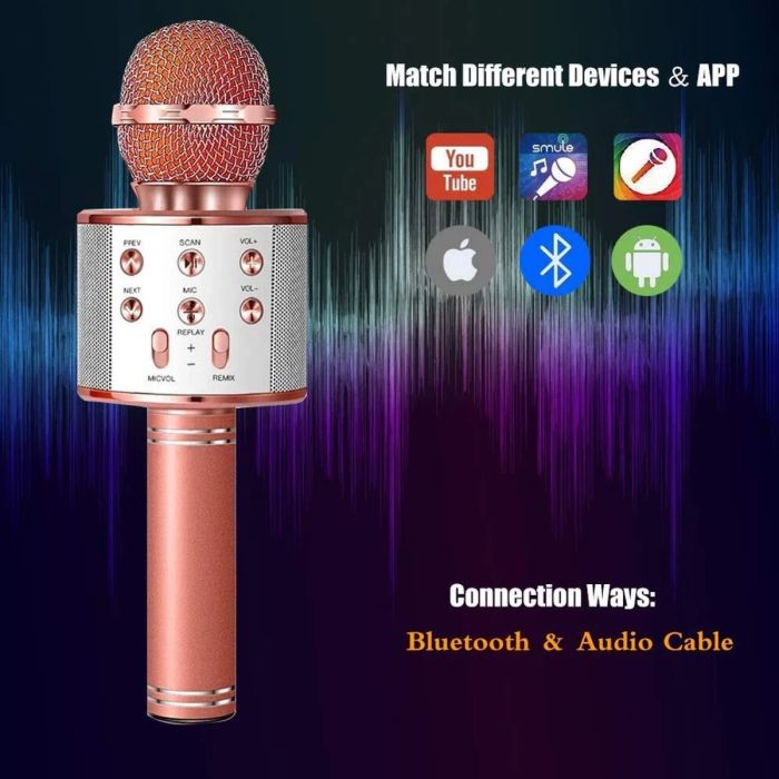 ميكروفون كاريوكي لاسلكي - وردي ذهبي