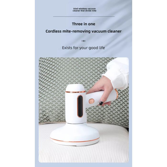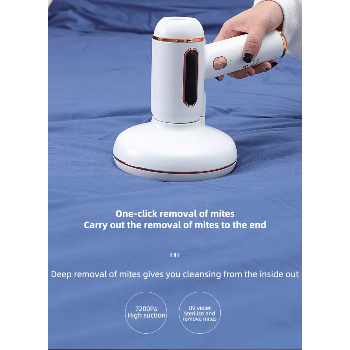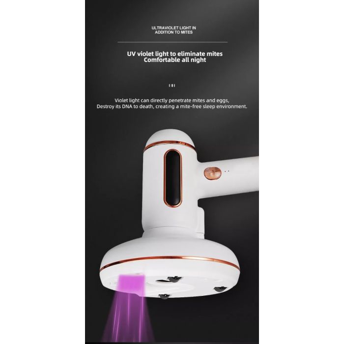 مكنسة كهربائية محمولة وخفيفة الوزن مزودة ضوءبمصباح للأشعة فوق البنفسجية لقتل العث والحشرات الصغيرة وتعقيم المفروشات. مصممة بحجم صغير وقوة شفط عالية