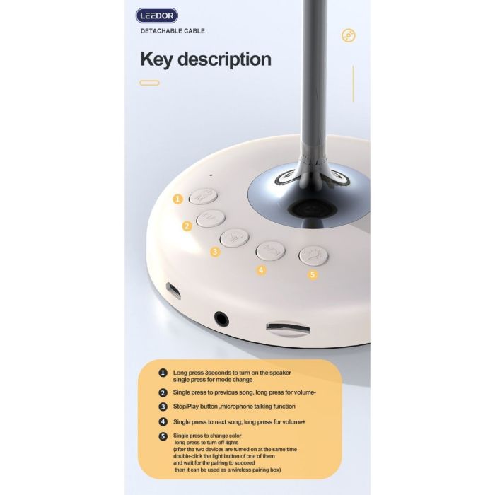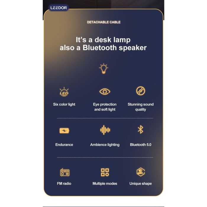 - مصباح مكتبي FM لاسلكي بمكبر صوت بلوتوث من LEEDOR