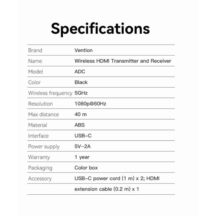 يوفر حرية بث المحتوى لاسلكياً لمسافة تصل إلى 40 متر مما يخلصك من فوضى الأسلاك تماماً. يضمن Vention تزامن الصوت والفيديو بدقة عالية مما يجعله خياراً ذكياً لقاعات الاجتماعات والسينما المنزلية لعرض الأفلام بضغطة زر واحدة بكل سهولة وأمان