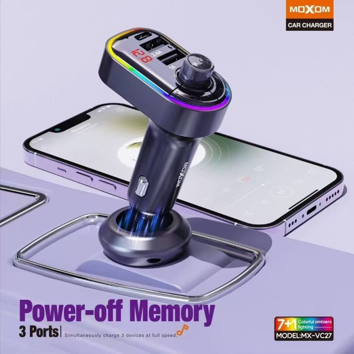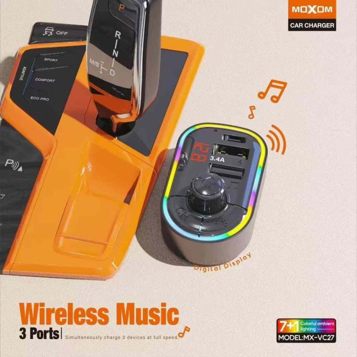 - شاحن لاسلكي لتشغيل الموسيقى ب3 منافذ للسيارة من Moxom