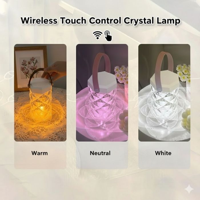 مصباح طاولة كريستال لاسلكي يعمل باللمس