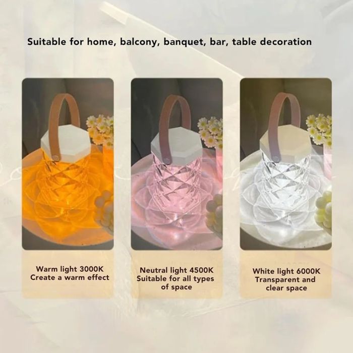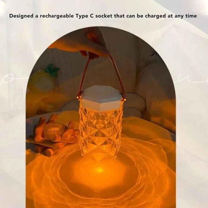 استمتع بضوء ناعم وجو هادئ مع هذا المصباح الكريستالي باللمس. قابل لإعادة الشحن، يوفر تأثيرات ضوئية رائعة ويضيف لمسة جمالية لغرف النوم والمكاتب.