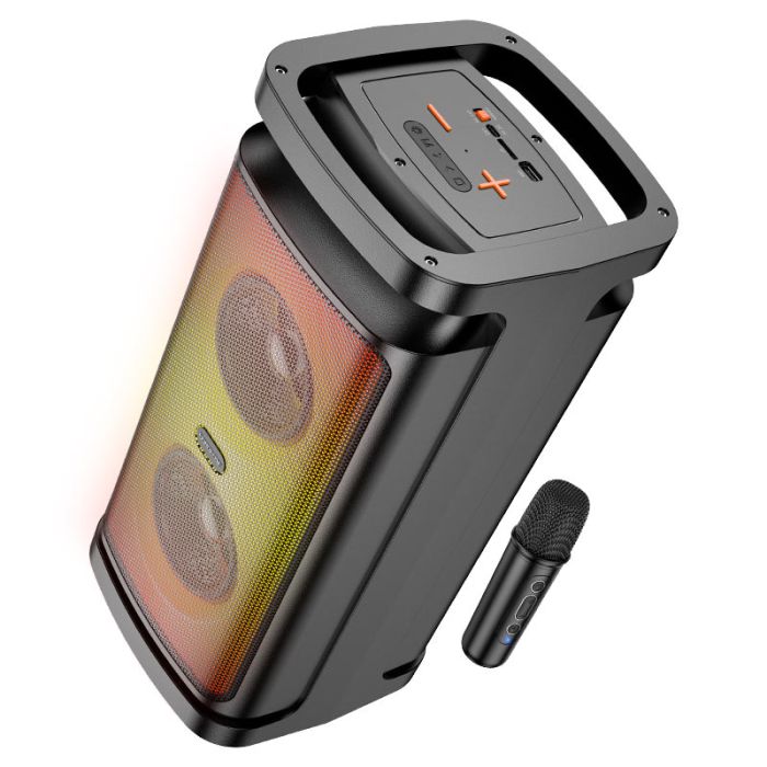 - مرفق مع ميكروفون لاسلكي مناسب للكاريوكي والعروض.