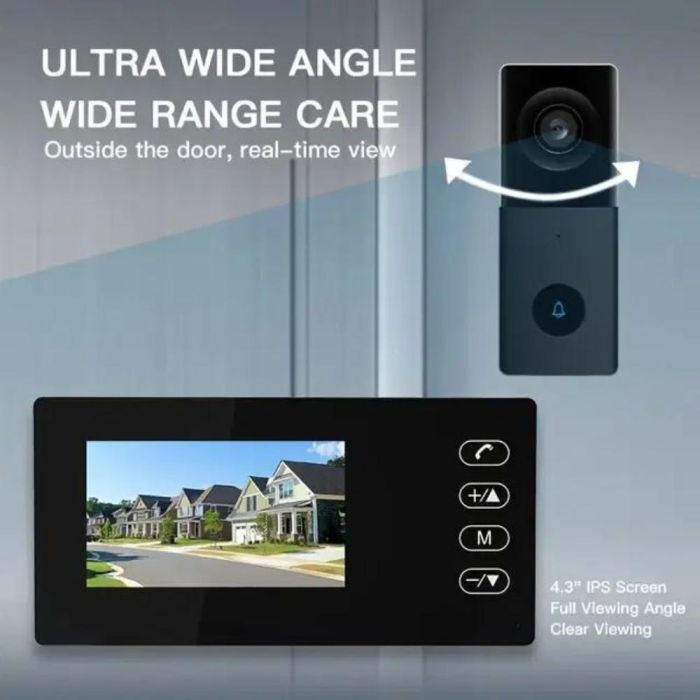 جرس باب فيديو لاسلكي مع شاشة 4.3 بوصة