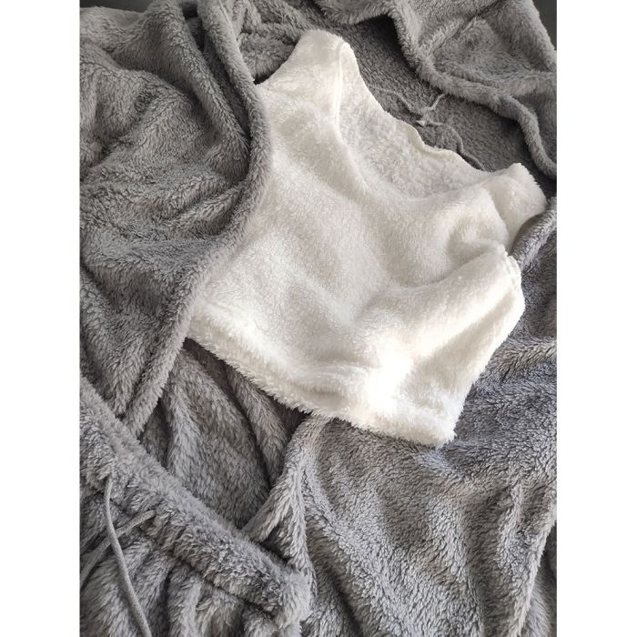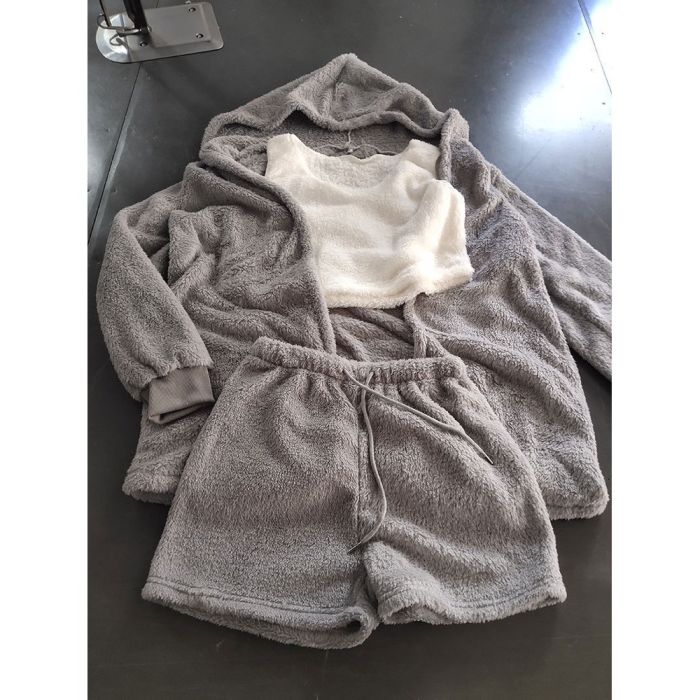 صفقة اليوم هي طقم فرو مخملي شورت 3 قطع للسيدات