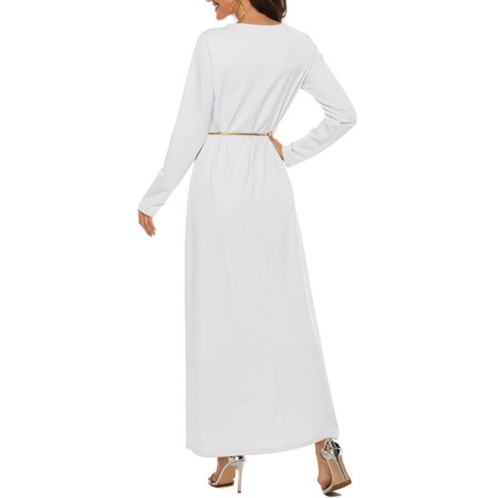 فستان سادة بأكمام طويلة للسيدات مصنوعة من قماش ناعم وخفيف الوزن، مصممة لتوفير تغطية كاملة ومريحة أثناء الصلاة، يتميز بتصميم فضفاض أساسي، مريحة متعددة الاستخدام، وتحافظ على جودتها، وتوفر أقصى درجات الراحة والاحتشام للسيدة.