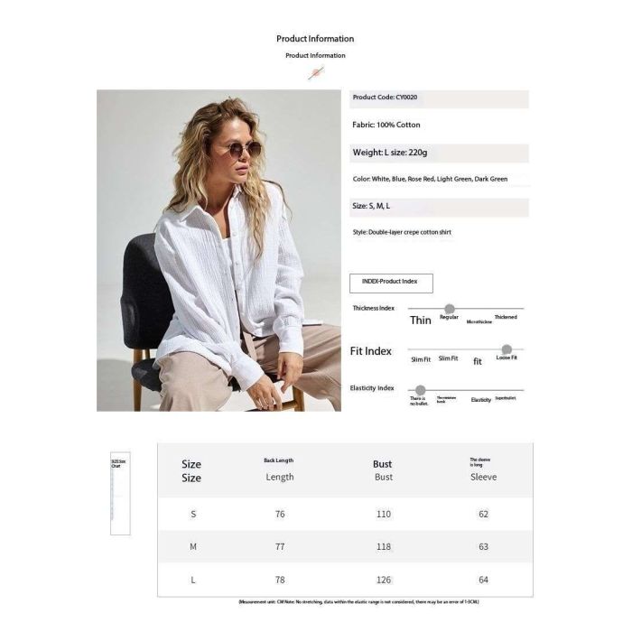 استمتعي بأناقة صيفية مريحة مع قميص البولو النسائي هذا المصنوع من الكريب القطني الخالص. صُمم هذا القميص ليجمع بين الأناقة والراحة، فهو مصنوع من قماش يسمح بمرور الهواء، وقصة مريحة، وياقة أنيقة. مثالي للارتداء مع التنانير أو الجينز أو السراويل الرسمية، ويضفي لمسة من الأناقة على إطلالتك اليومية. مثالي للنزهات الكاجوال أو إطلالات العمل الأنيقة.صفقة اليوم هي قميص بولو نسائي فضفاض من القطن