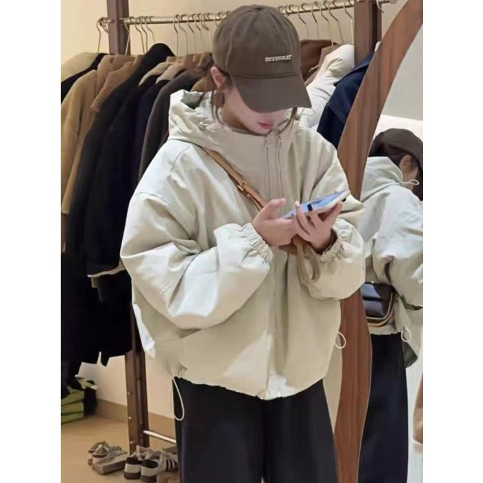 جاكيت مبطن دافئ بتصميم واسع وكاجوال مزوّد بغطاء للرأس ورباط للتحكم، مناسب للخروج اليومي وأجواء الخريف والشتاء.صفقة اليوم هي سترة نسائية مبطنة بغطاء رأس ورباط