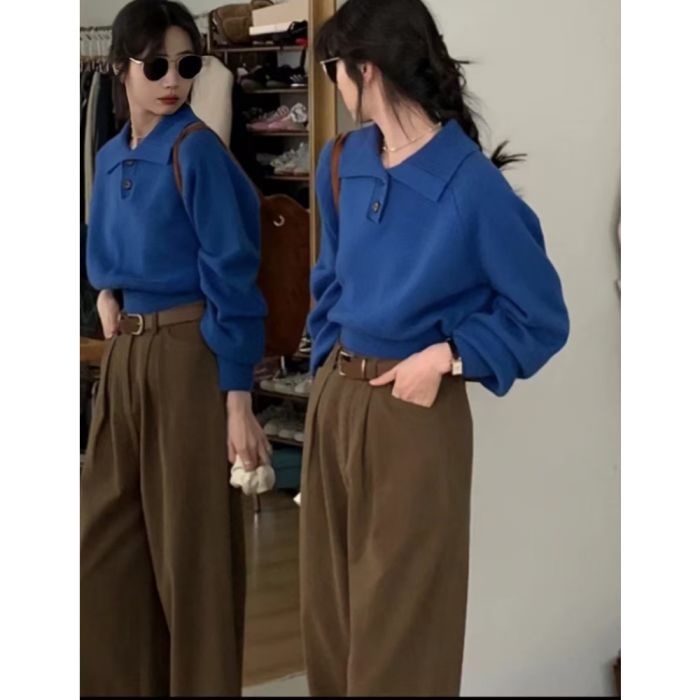 بلوزة أنيقة بأكمام طويلة للسيدات مصنوعة من نسيج محبوك ناعم، تمنح إطلالة راقية بانسيابية جذابة، تصميمها الفضفاض يضيف لمسة أنيقة للطبقات، مناسبة للخريف والشتاء، توفر راحة أنيقة مع الحفاظ على جودته