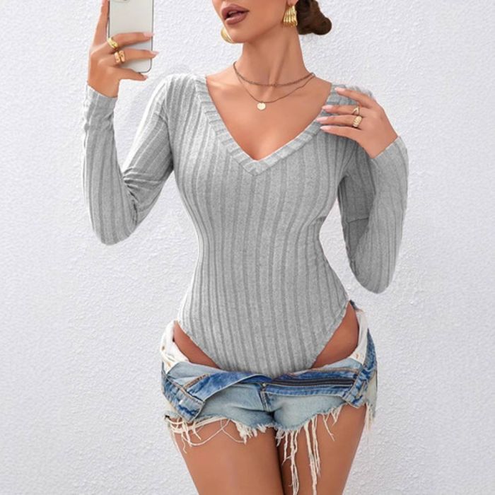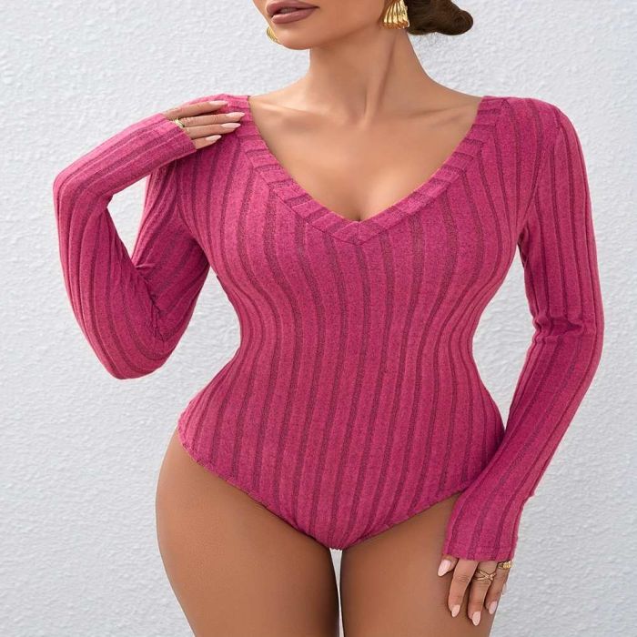 - بودي سوت أنيق بياقة V للسيدات